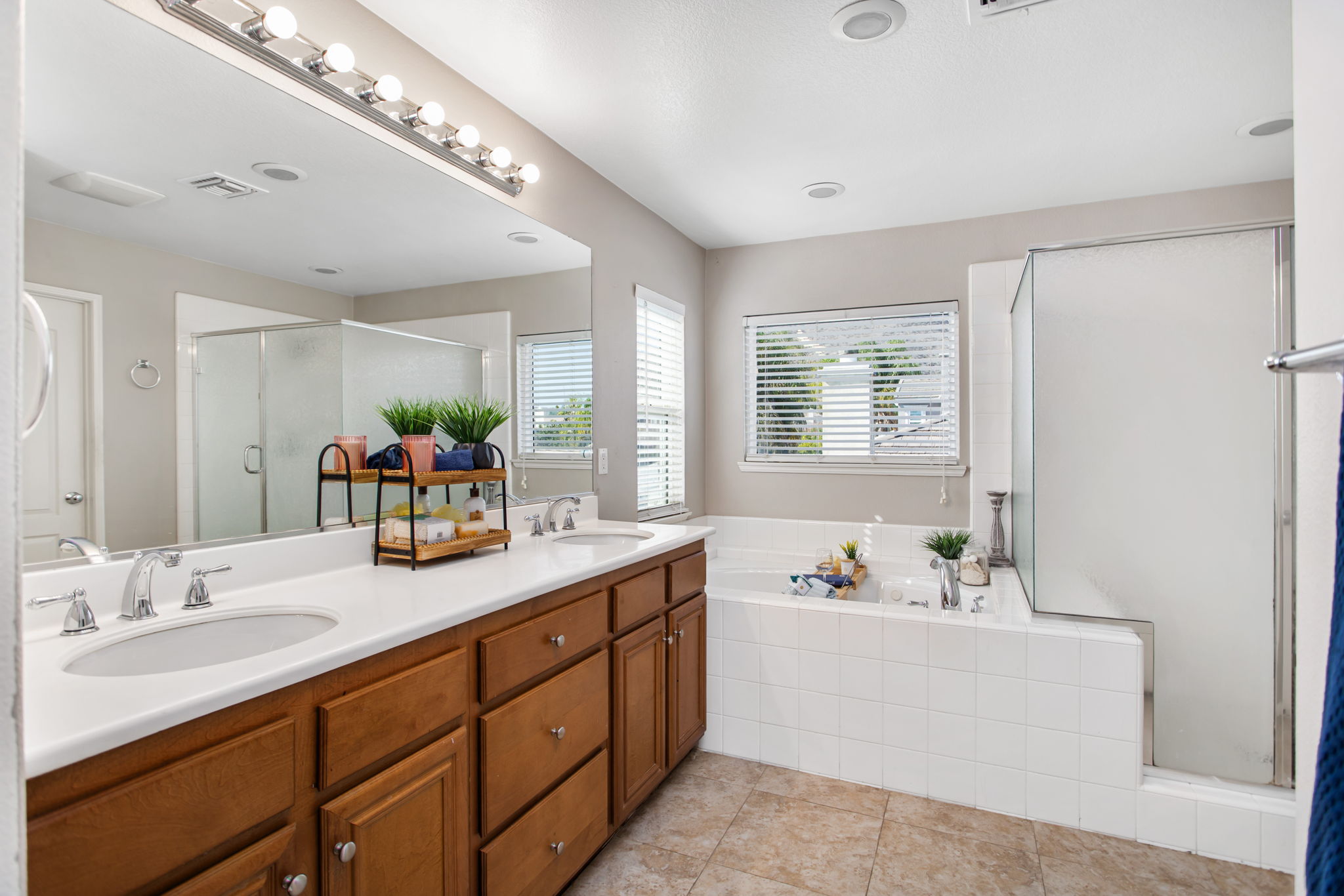 *Private Primary Suite: Spacious retreat featuring dual sinks, a soaking tub, and a walk-in closet.